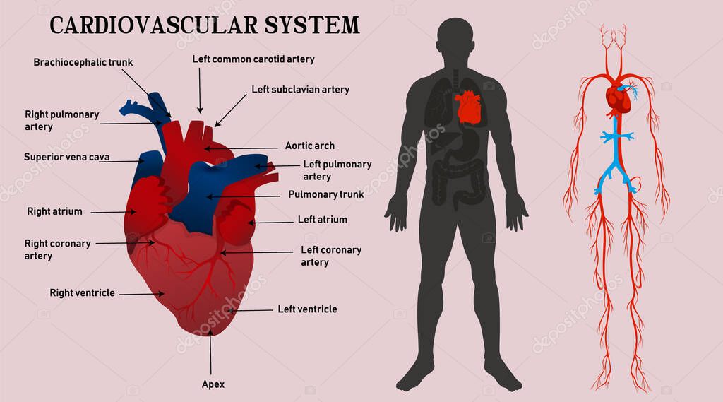 24+ Heart Anatomy Cardiovascular System. The cardiovascular system consists of the heart, blood vessels, and the approximately 5 liters of blood that the blood vessels transport. The circulatory system, also called the cardiovascular system or the vascular system, is an organ system that permits blood to circulate and transport nutrients (such as amino acids and electrolytes).