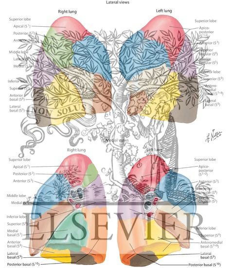 39+ Anatomy Lung Bronchopulmonary Segments. These arteries branch from the pulmonary and bronchial arteries, and run together through the center of the segment. Veins and lymphatic vessels drain along the edges of the segment.