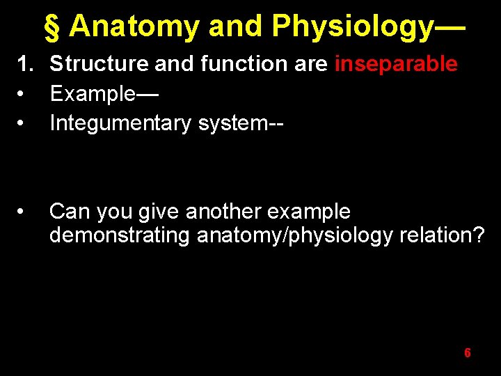 Which type of anatomy listed below is not an example of gross anatomy? Define the terms anatomy and physiology, and give specific examples to so understanding physiology requires an understanding of anatomy, and vice versa. For example, a physiologist may focus on the excretory system or the reproductive system.