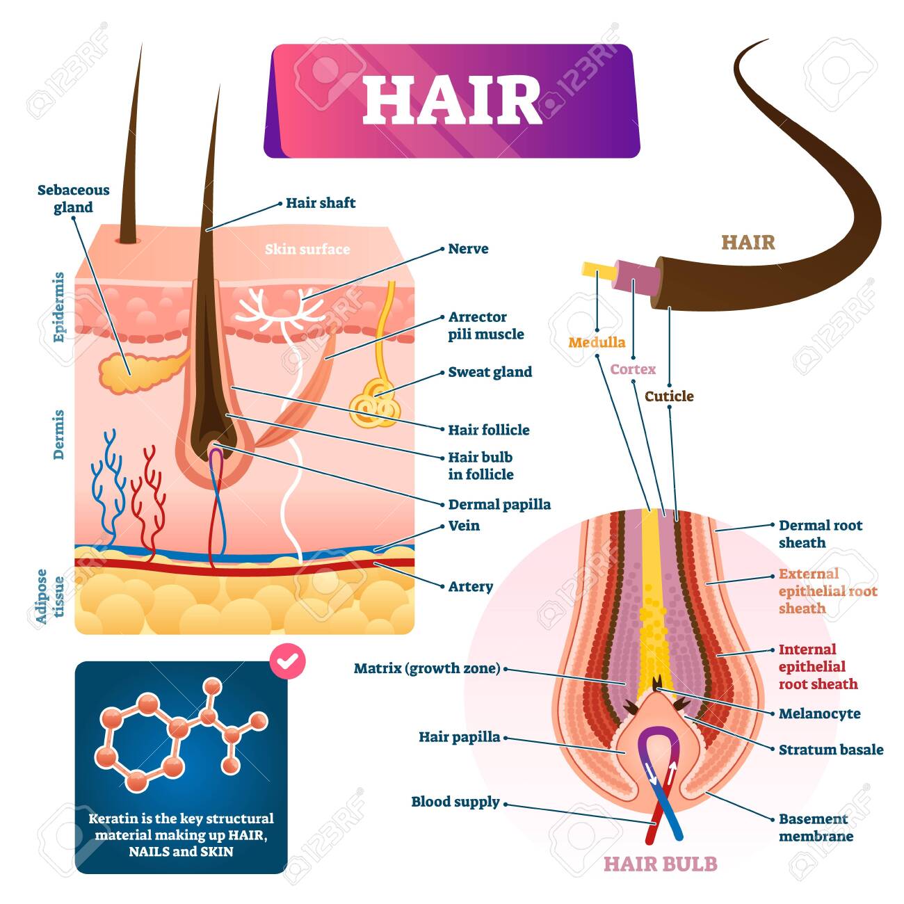 16+ Skin Anatomy Hair Follicle. Hair is made of a tough protein called keratin. Transcript/notes hair structure, hair color and hair growth.