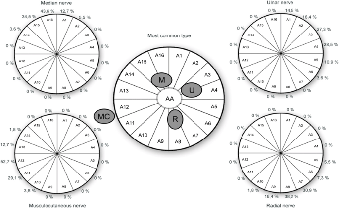 A schematic representation of the blood supply to the axilla and lateral chest wall in which all the possible vessels.