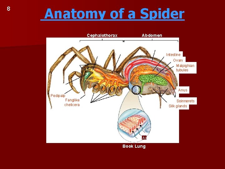 The anatomy of spiders includes many characteristics shared with other arachnids. They are designed to help them move with ease and to conserve energy. The anatomy of spiders includes many characteristics shared with other arachnids.